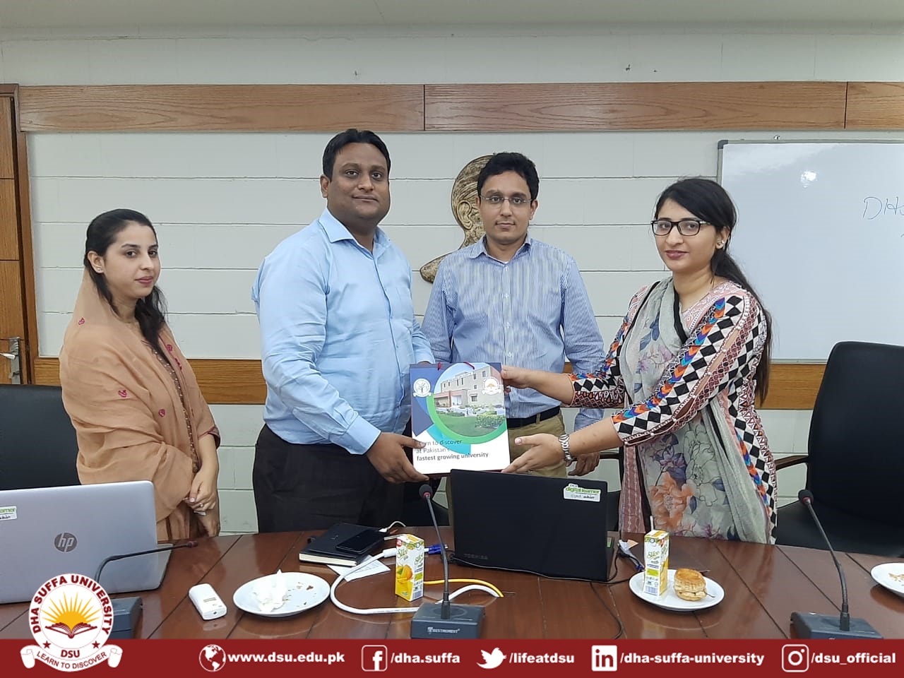 The students of Mechanical Engineering visited the Pakistan Telecommunication Company Limited (PTCL) on 28th November’ 19 as part of their learning on the practices of management. A group of about 23 students was accompanied by Ms. Tehseen Azhar. The Management and Human Resource perspective was shared by the HR team of PTCL. They shared that how they are extending their network for corporate clients i.e B2B and B2G of PTCL. Also they own their own health care centers and an academy at Haripur for training purposes. Cherry on the top, they mentioned to offer internships opportunities for DSU students. Overall it was a great learning experience for the entire team.