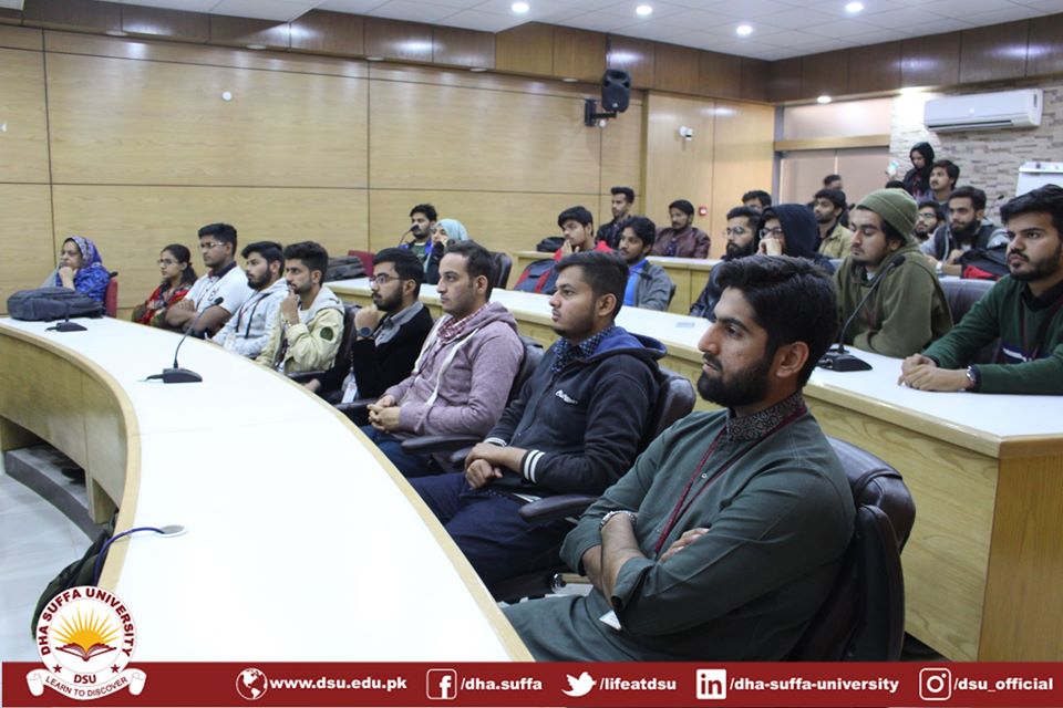 An Enhancing Professional Capacities (EPC) session on Data Science and its Applications was recently arranged by Professional Development Centre for the students of DSU. Ms. Behjat Qurban, Head of AI & Analytics, Learning & Development Lead, Deloitte UK and Konain Qurban, CEO, Frontier Technology Institute addressed a class full of keen students wanting to know more about the real world applications of this data science. The speakers talked about the emerging field of Data Science, its prospects in Pakistan and globally along with the benefits and challenges it offers to institutions and corporations. Drawing from her experience at Deloitte UK, Ms. Behjat also shared interesting anecdotes on how data improves long term performance and how it should be documented and stored for better decision making. The session concluded with an interactive Q&A round.